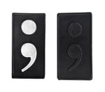This small embroidered patch measures 2 inches x 4 inches with a merrowed border and no backing material. Semicolon available in either white or black.